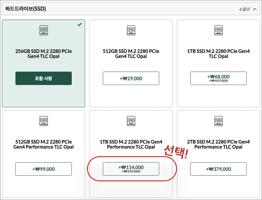 램은 16GB로 고정되어 있고, 스토리지는 선택할 수 있는데요. 저는 1TB SSD를 추천합니다. 아무리 클라우드 스토리지를 잘 활용한다고 해도, 이제는 SSD 용량 1TB가 스탠다드라고 할 수 있는 시대라서요 ^^
