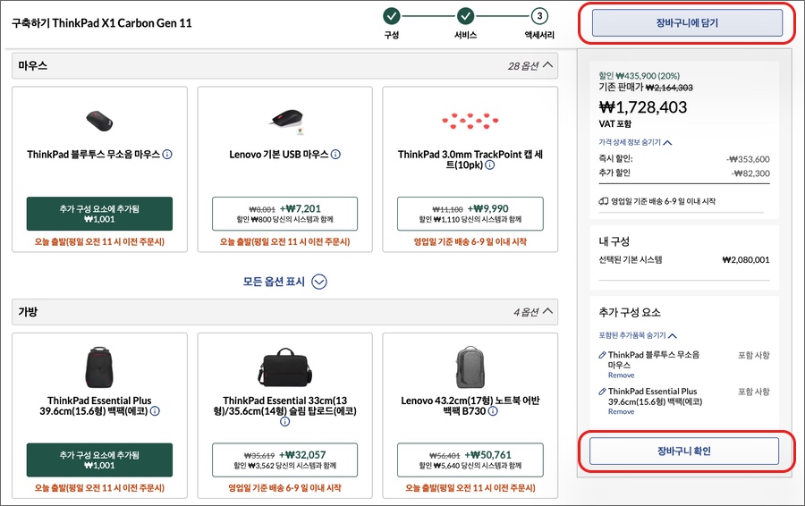 이제 위와 같이 내가 커스텀으로 수정한 사양의 씽크패드를 구입할 수 있게 됩니다.