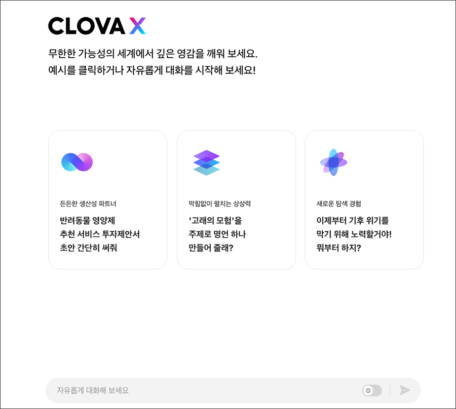 :: Clova X ์์ฑํ AI ๋ฐ๋ก๊ฐ๊ธฐ ::