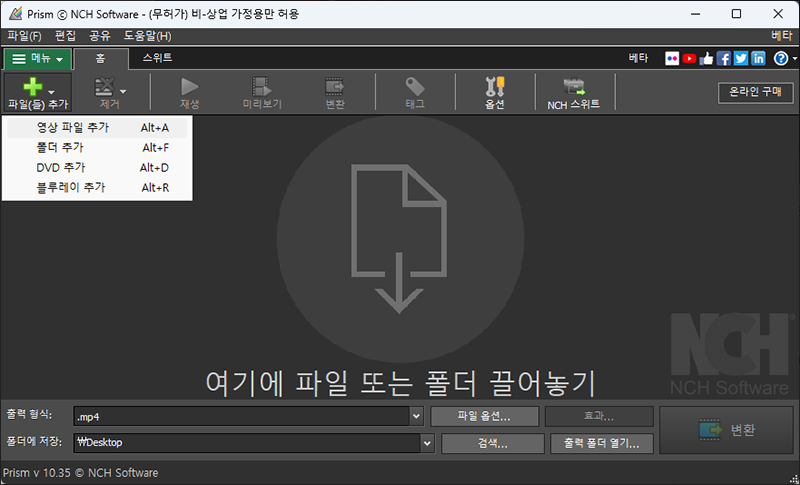 ๊ทธ ๋ค์์ผ๋ก ์๊ฐํ๋ ์ํํธ์จ์ด๋ ํ๋ฆฌ์ฆ ๋น๋์ค ์ปจ๋ฒํฐ ์ ๋๋ค. UI๊ฐ ์ฝ๊ฐ ์ค๋๋ ๋๋์ด์ง๋ง ๋ค์ํ ์์ ํ์ผ์ ์ง์ํ๊ณ , ๋งฅ๊ณผ ์๋์ฐ ๋ชจ๋ ์ง์์ ํ๋ค์. ๋น์ทํ ๋ฐฉ๋ฒ์ผ๋ก ์์ ํ์ผ์ ์ถ๊ฐํ๊ณ , ๋ณํํ๊ธฐ ์ ์ ํฌ๋งท์ด๋ ํด์๋ ๋ฑ์ ์ค์ ํ ์ ์์ต๋๋ค. ๋ค๋ง ์ํ๋ ์ฉ๋์ ์ค์ ํ๋ ๊ฒ์ ์๋๊ณ , ๋นํธ๋ ์ดํธ๋ฅผ ๊ณ ๋ฅผ ์๋ ์๋ค์.