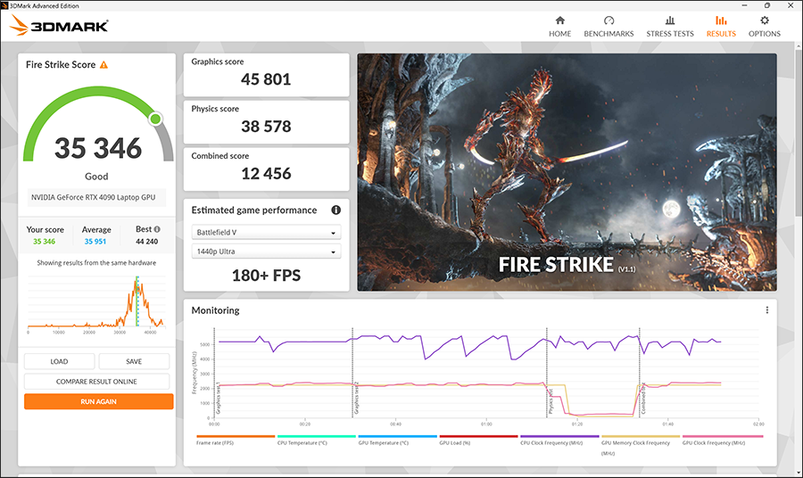 그리고 파스(파이어스트라이트)는 35346점입니다. 저에게 있어서는 정말 역대급 신기록을 보는 것 같습니다.