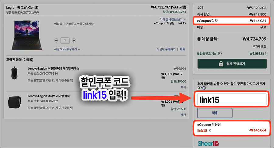 레노버 노트북 추가할인 쿠폰코드:link15