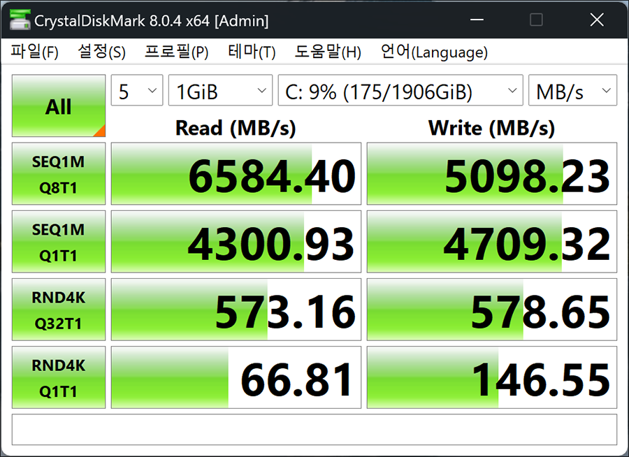 스토리지 성능은 위와 같이 크리스탈 디스크 마크 결과로 볼때 최대읽기/쓰기 속도가 각각 6584MB/s 5098MB/s로 측정되는데요. 참고로 해외 자료를 참고해보니...
