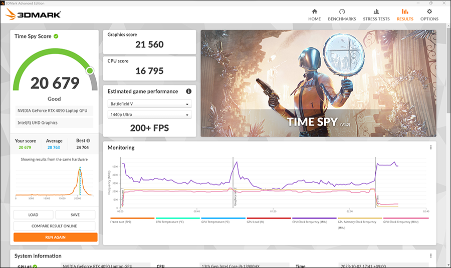 23579점이 나오네요. 아직은 비교군이 거의 없어 실감이 안날 수도 있는데, 밑에 3D마크 벤치마크 결과도 있으니 참고해보시면 좋을 것 같습니다.