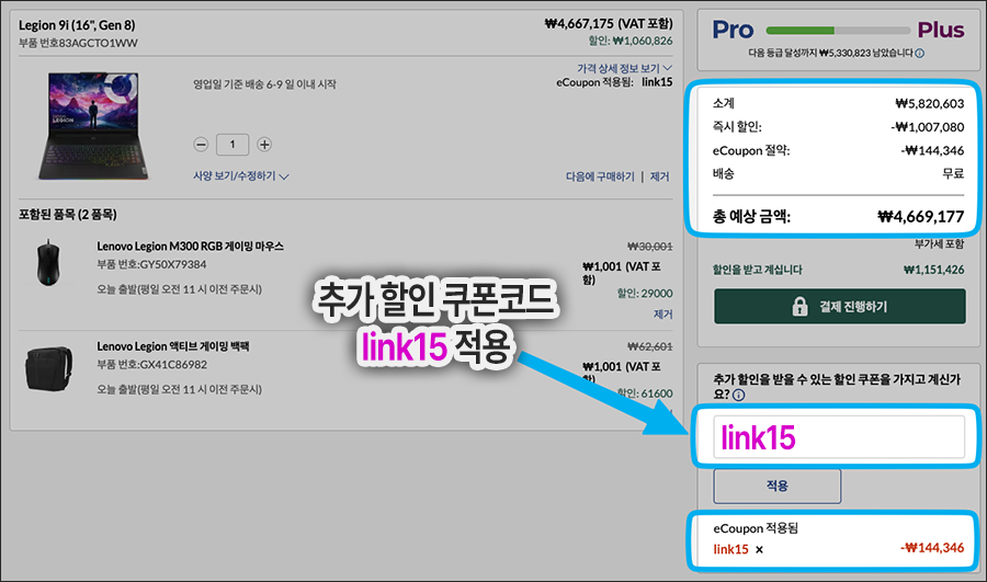 * 레노버 프로스토어 (개인 법인 및 사업자)는 위에 링크를 통해 접속하실 수 있는데요. 사업장을 가지신 분들이라면 간단한 회원가입을 통해 누구나 레노버 노트북을 구입할 때 추가할인을 받으실 수 있습니다. (일반 스토어보다 할인율이 조금 높죠) 공유해드린 쿠폰코드 link15도 동일하기 장바구니에서 결제 전에 입력하시면 추가할인이 이루어지니 사용해보세요.