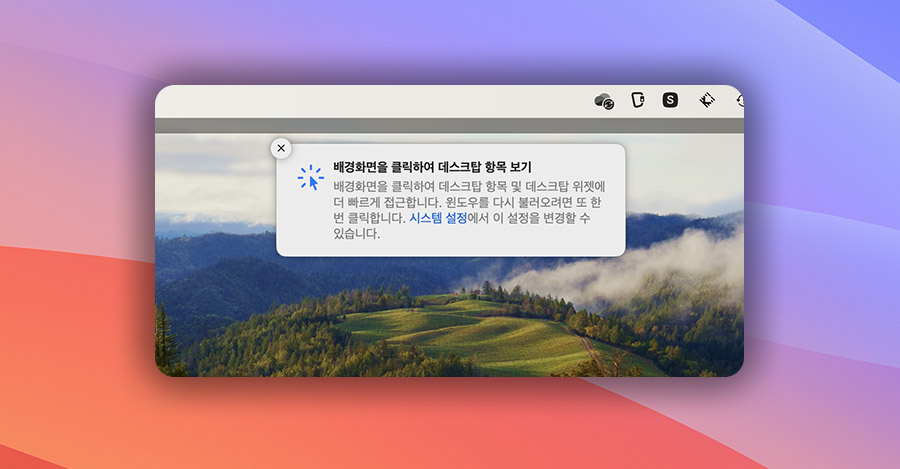 ๋งฅOS ์๋ ธ๋ง '๋ฐฐ๊ฒฝํ๋ฉด ํด๋ฆญํ์ฌ ๋ฐ์คํฌํ ๋ณด๊ธฐ' ๊ธฐ๋ฅ ๋๋ ๋ฐฉ๋ฒ