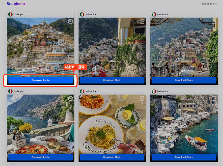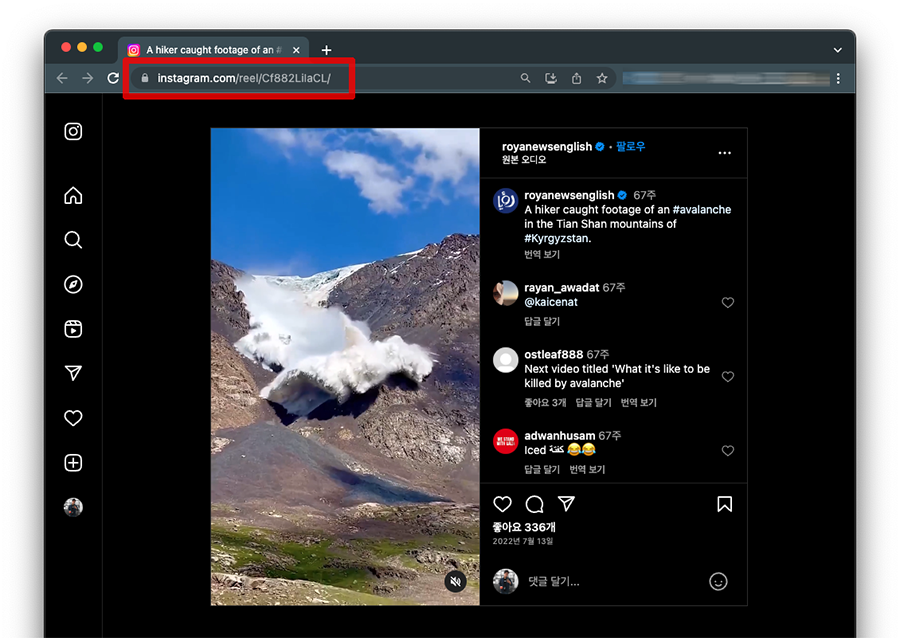 ์์ ๊ฐ์ด ์ฌ๋ฌ์ฅ์ด ์ฌ๋ ค์ง ์ฝํ ์ธ ๋ก URL ์ฃผ์๋ง ๋ฐ์ ์ค๋ ์ธ์คํ์ ๋ถ์ด๋๊ณ ๋ค์ด๋ก๋๋ฅผ ์คํํ๋ฉด...