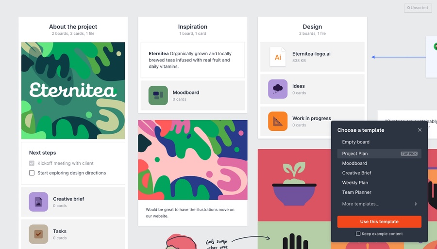 ์๋ฐ ๊ธฐ๋ฅ ์ด์ธ์๋ ๋ณด๋(Board) ๊ธฐ๋ฅ์ ์ค์ฌ์ผ๋ก ์ฌ์ฉํ ์ ์๋ ๊ฒ์ด Milanote์ ํต์ฌ์ด๋ผ๊ณ ํ ์ ์๋๋ฐ์. ๋ง์น ํ์ผ ์์ด์ฝ ์ฒ๋ผ ์๊ธด ๋ณด๋๋ฅผ ๋ง๋ค๊ณ ์ด๋ฆ์ ์ง์ ํ๋ฉด, ๋ง์น AI์ฒ๋ผ ์๊ธฐ๊ฐ ์์์ ์ฐ๊ด์ด ์๋ ์์ด์ฝ์ ์ค์ ํด์ฃผ๋ ๊ธฐ๋ฅ๋ ์์ต๋๋ค.
