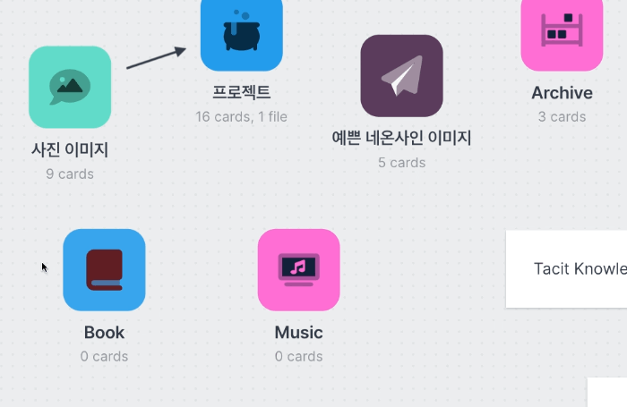 ์ ๊ฒฝ์ฐ์๋ ๋ณด๋๋ฅผ ํด๋ ์ฒ๋ผ ๋ง๋ค์ด ํ์ฉํ๋ฉด์, ๊ฐ ํด๋(๋ณด๋)์ ์ ํฉํ ์๋ฃ๋ค์ ์ ๋ฆฌํ๊ณ ... ์ฐ๊ฒฐ์ฑ์ด๋ ์ฐ๊ด์ฑ์ ํ์ดํ๋ฅผ ์ฐ๊ฒฐํด ๋ ์๋ ์๊ณ , ๋ด๋ถ์ ์ปฌ๋ผ(Column)์ ๋ง๋ค์ด ์นด๋ํํ๋ก ์ด๋ฏธ์ง, ์์๋ค์ ๋ฆฌ์คํธ์ ํ๊ณ ๋๊ธ์ด๋ ๋ฉ๋ชจ๋ฅผ ๋จ๊ธฐ๋ ๋ฐฉ๋ฒ์ผ๋ก ๊ฐ์ธ์๋ฃ๋ฅผ ์ ๋ฆฌํ๊ณ ์์ต๋๋ค. ๋ด๊ฐ ๊ฐ์ง ์๋ฃ๋ค์ด ์๊ฐํ๋์ด ๋ฐ์คํฌํฑ ์ฒ๋ผ ํผ์ณ์ ธ ์๊ธฐ ๋๋ฌธ์, ์๊ทผ ์ ๋ฆฌ๋ ์๋๊ณ ํ์ฉํ๊ธฐ ์ข์ต๋๋ค.
