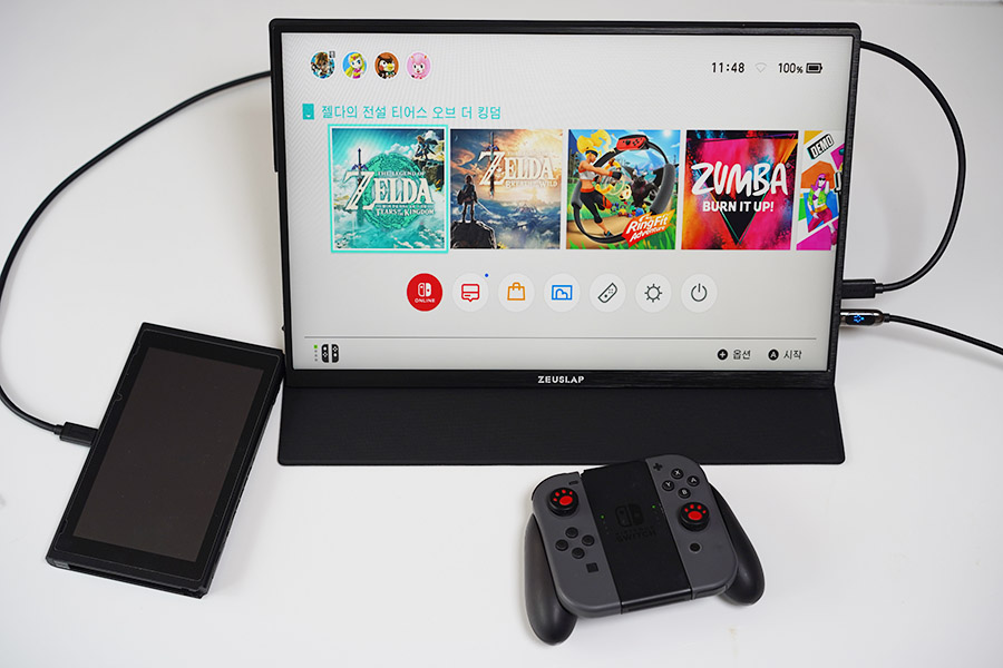 지금은 닌텐도 스위치를 연결해서 카페에서 큰 화면으로 플레이하고 싶을 때 활용하고 있는데요. 제 작업 공간이 생기면 메인 모니터 옆에 거치를 해두고 사용할 수 있는 보조 디스플레이로 활용해볼까 생각하고 있습니다.