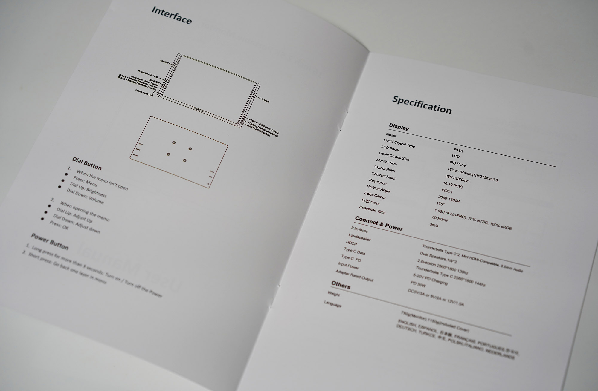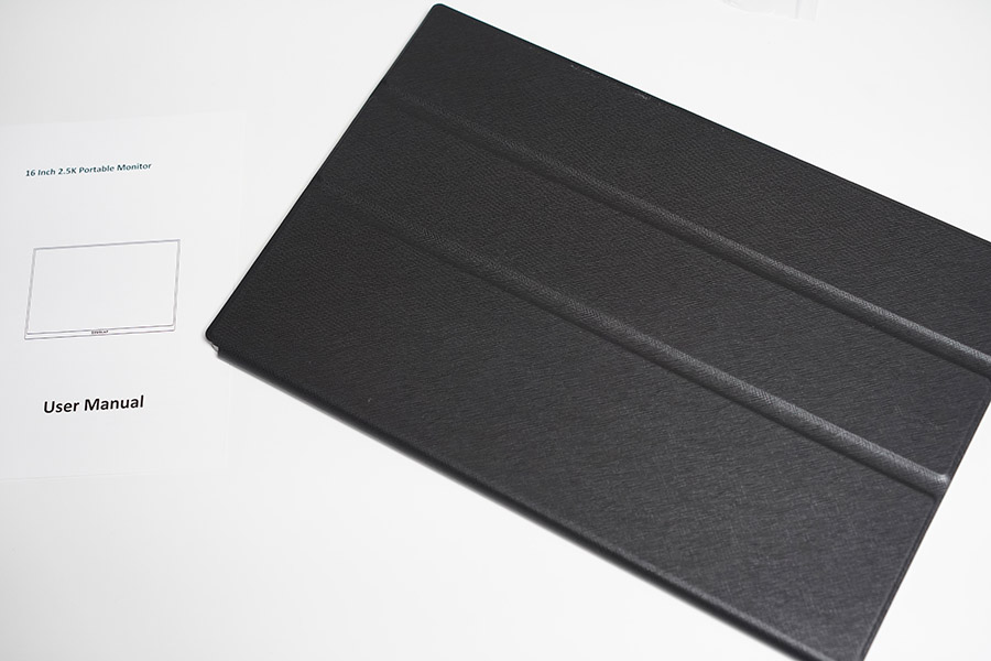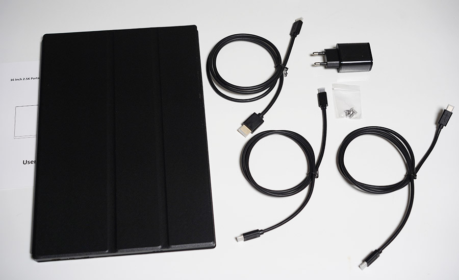 위와 같이 USB-C 케이블 2개, mini HDMI to USB TYpe-C 케이블 한개, 메뉴얼과 전용 마그네틱 케이스, 그리고 USB PD 충전기와 VESA홀을 고정시킬 수 있는 나사가 전체 구성품이네요.