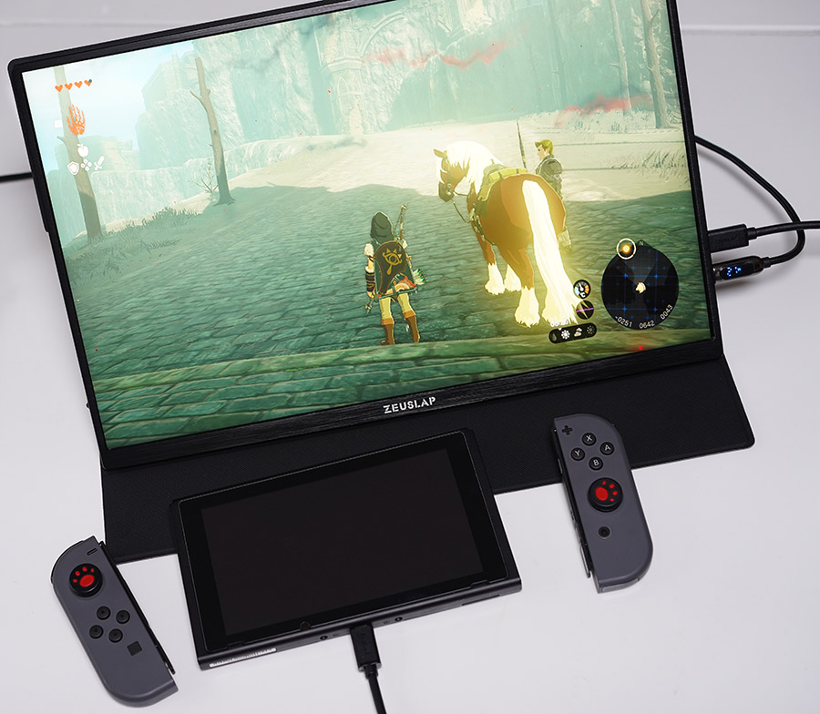 보통은 위와 같이 USB-C 포트 한개는 전원 출력을 해주고... 다른 하나는 디스플레이 포트를 연결해서 사용하고 있는데요. 닌텐도 스위치나 맥북의 보조디스플레이로 활용하면 딱이네요. 16인치 시원시원한 화면과 144Hz 주사율을 가지고 있어서 쓸만합니다.