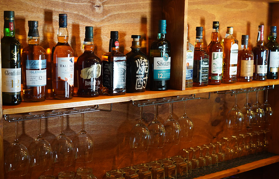 전체적으로 인테리어가 독특하면서 편안한 분위기를 가지고 있어서, 소수인원으로 찾아가기 매우 좋은 장소인 듯 합니다. 핸드 메이드 손길이 많이 들어가 있는 공간인듯 하네요. 술병과 와인 글래스로 진열된 모습을 구경해보는 소소한 재미도 있습니다.