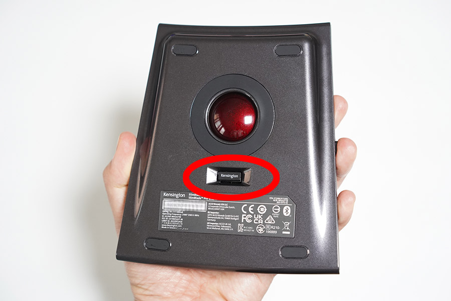 아랫면을 살펴보면 이렇게 USB-A 리시버가 수납되어 있습니다. 뽑아서 사용하면 됩니다.