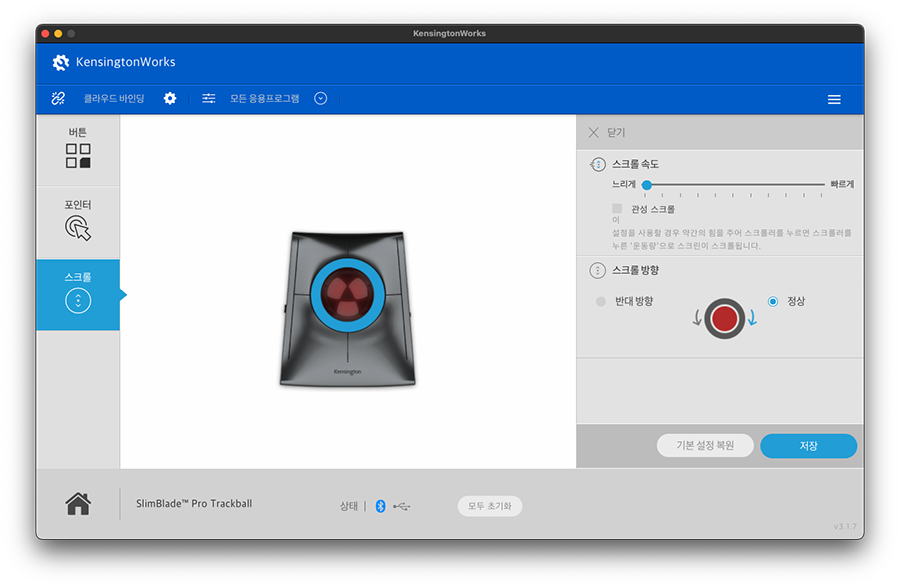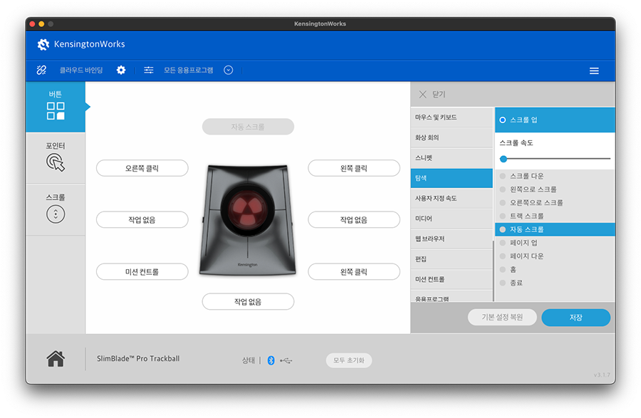 이 기능은 KensingtonWorks 전용 관리 소프트웨어에서도 스크롤 탭에서 옵션을 설정할 수 있습니다. 관리 소프트웨어 기능을 조금 살펴보면...