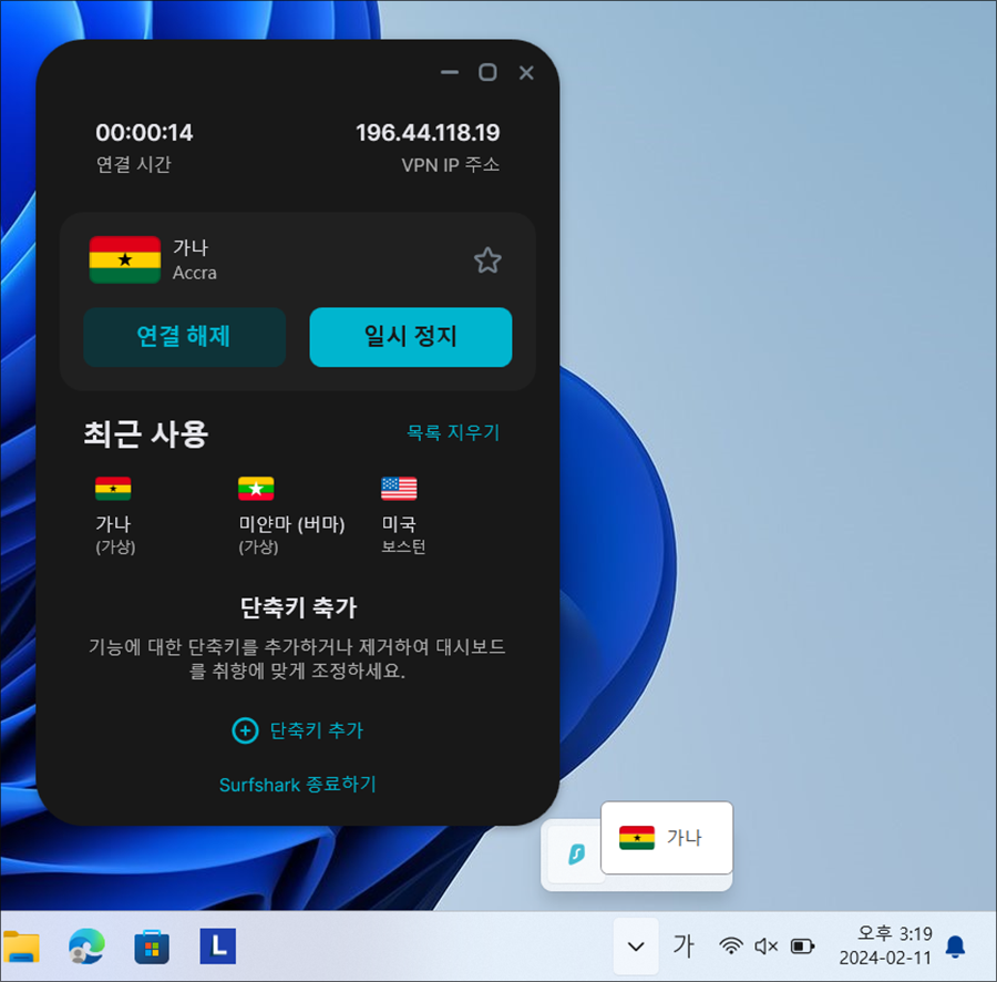κ·ΈλΌ VPNμ μ¬μ©ν΄μ ν΄μΈ μ°νμ μμΌλ‘, λ€λ₯Έ λλΌλ€μ ꡬλ λ£κ° μΌλ§μΈμ§ νλ² λ³΄κ² μ΅λλ€. λ¨Όμ Surfshark VPNμ±μ μλμ°μμ μ€ννλ©΄ μλμ κ°μ νλ©΄μ λ³Ό μ μμ΅λλ€.