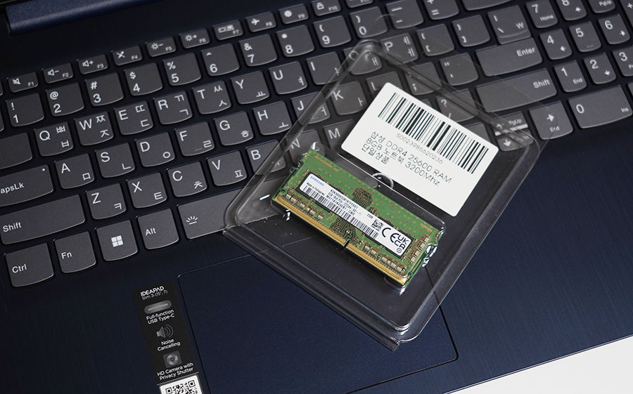 램은 노트북램으로 쇼핑몰에서 검색하시면 되고, DDR4인지 DDR5인지만 잘 확인해서 구입하시면 됩니다. 8GB를 추가로 장착해서 총 16GB가 되었습니다.