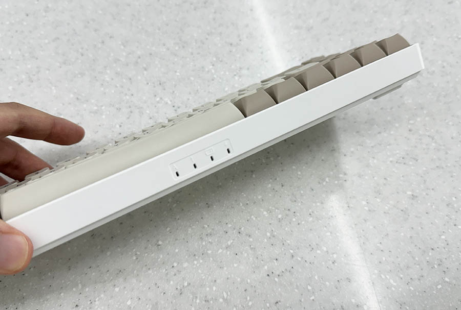 ํ๋จ์ ์ํ LED๋ค์ด ์์นํ๊ณ ์์ต๋๋ค. ์บก์ค๋ฝ๋ ์ผ์ ธ ์๋์ง ์๋์ชฝ์ ํ์ธํด์ผ ํ๋ค๋ ๊ฒ์ ์กฐ๊ธ ๋จ์ ์ด๊ธด ํ๋ค์. ํค๋ณด๋ ์ฌ์ฉ์ ์๋ซ๋ฉด์ ์์ฃผ ๋ณด๋ ํธ์ ์๋๋๊น์.