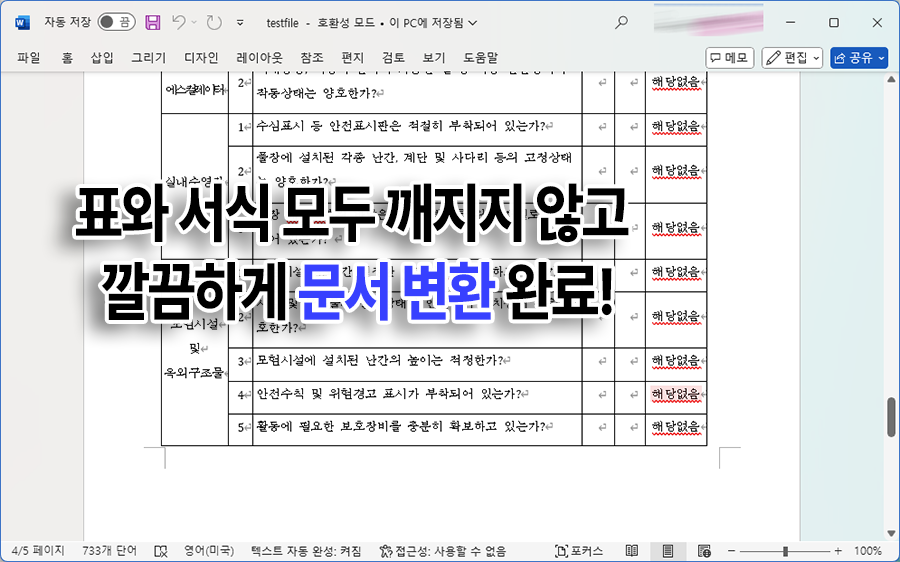 μ΄μ°λμλ μ¬λ¬κ°μ§ μ΄μ λ‘ νκΈ λ¬Έμλ₯Ό MSμ€νΌμ€ μλλ‘ λ³νν΄μΌ ν λ, κ°λ¨ν λ¬Έμλ μμ½κ² λ³΅μ¬ λΆμ¬λ£κΈ°λ 'λ€λ₯Έ μ΄λ¦μΌλ‘ μ μ₯νκΈ°'λ‘ μ΄λμ λ ν΄κ²°μ΄ κ°λ₯νμ§λ§... 볡μ‘ν ν μ΄λΈμ΄ λ€μ΄κ° λ¬Έμλ κΉ¨μ§ νμμ΄ λλλ¬μ§λκ΅°μ.