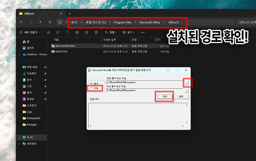 νμκΈ°μμ C:\Program Files\Microsoft Office\Office15 λ‘ μ°Ύμλ€μ΄κ°λ©΄ μ¬κΈ°μ Batchhwpconv.exe μ€ν νμΌμ λ³Ό μ μμ΅λλ€. μ€νμμΌλ³΄λ©΄ μΌκ΄ λ°°μΉ μμ μ΄ κ°λ₯ν νλ‘κ·Έλ¨μ΄κΈ°λ νλ€μ.