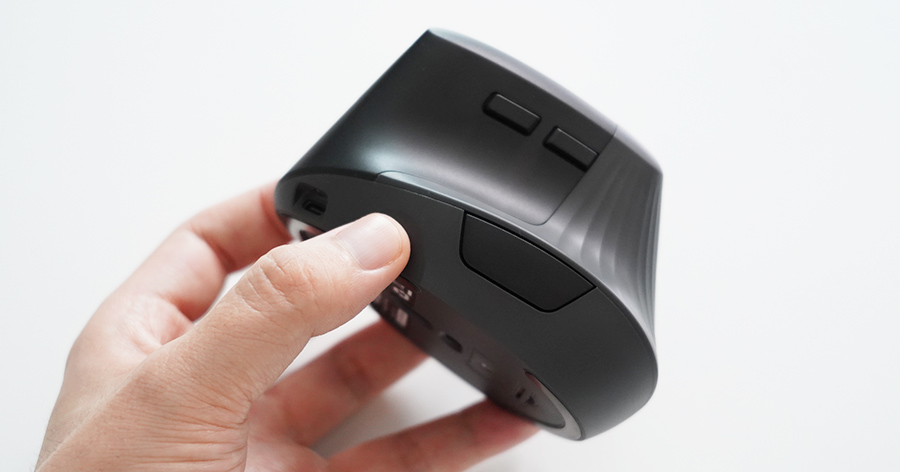 하단 측면 부분에 충전을 위한 USB-C 포트가 있고, 다른 마우스와는 달리 바닥면 쪽에 특수 버튼(?)이 있는데요.