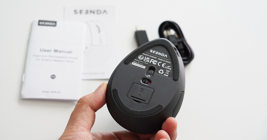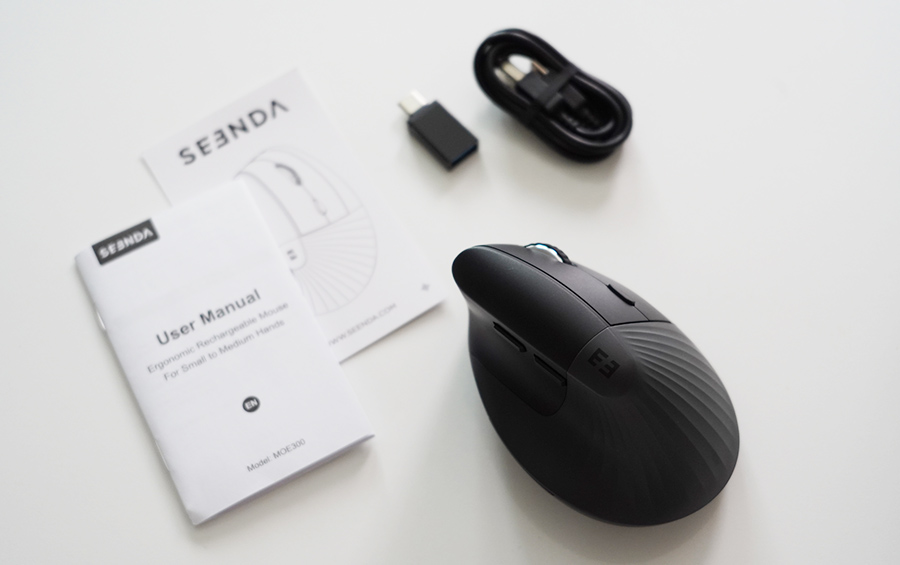 Seenda 마우스는 제가 지금까지 사용해본 버티컬 마우스 중에서는 가성비 갑이라 할 수 있을 정도로 완성도가 있는 마우스 입니다. 블루투수 무선을 지원하지 않는다는 것은 아쉽지만, 내장 배터리와 USB 리시버를 수납할 수 있고, USB 어댑터도 제공되기 때문에 구성도 좋다는 것이 추천할만한 이유네요.
