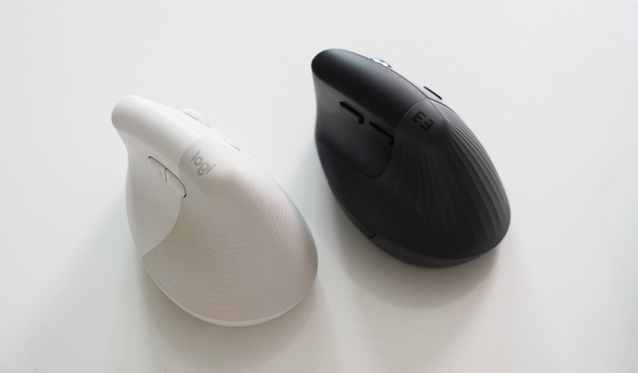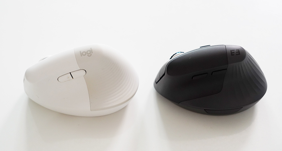 자 그럼 본격적으로 로지텍 리프트와 비교를 해볼까요? 저는 로지텍 리프트 마우스만 3개를 사용하고 있는데, 구분이 잘 되도록 화이트 모델을 놓고 사진으로 비교해보겠습니다.