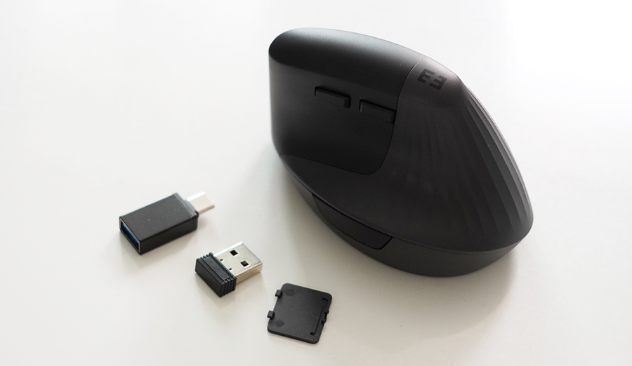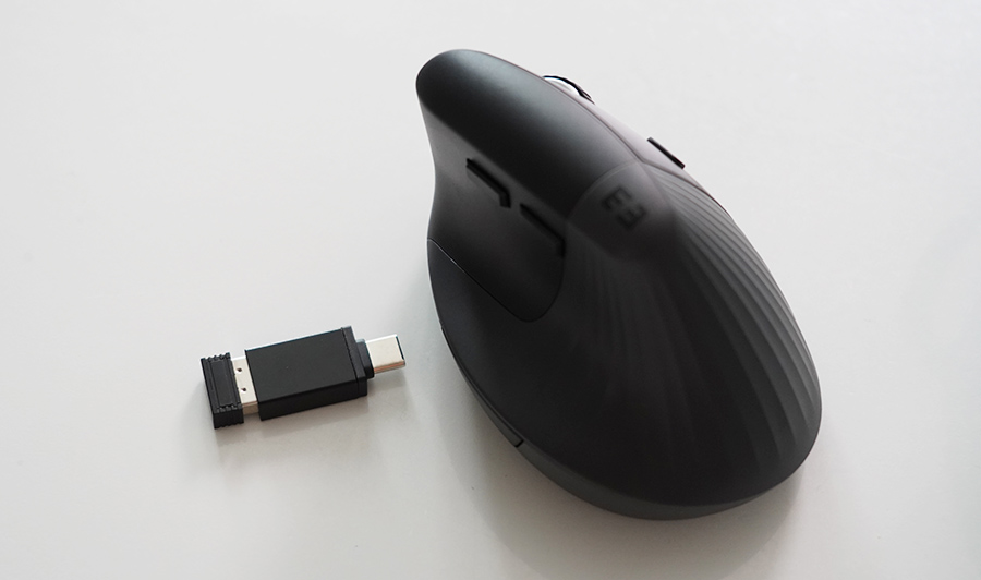 디자인이 로지텍 리프트를 많이 참고한 것 같습니다. 대신 이 마우스는 로지텍 리프트 처럼 건전지를 사용하지 않고 자체 배터리를 내장하고 있습니다. 그리고 블루투스 무선 대신 2.4Ghz USB 동글 리시버를 사용하는 무선 마우스죠.