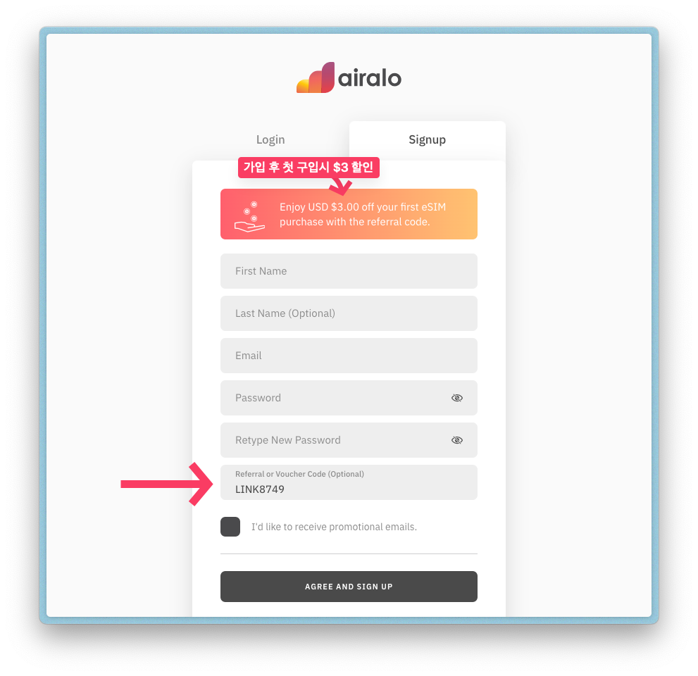Airalo 쿠폰코드 첫 구입시 wind15 (15% 할인) / 상시 wind10 (10%할인)