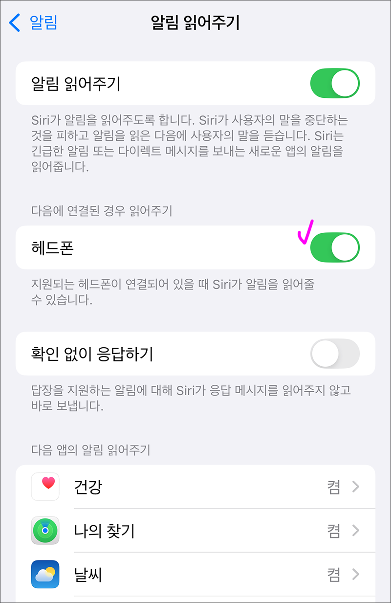 μ°Έκ³ λ‘ μ μμ΄νμ λΌμ°κ³ μμ λ μλ¦Όμ΄ μ€λ©΄ λ¬Έμλ μΉ΄ν‘, λΌμΈ λ±μ λν λ΄μ©μ μ리(Siri)κ° μ½μ΄μ£Όλ κ²μ΄ μ μ΄μνλκ΅°μ. κ·Έλμ ν΄λΉ κΈ°λ₯μ μ°Ύμμ λκ² λμμ΅λλ€.