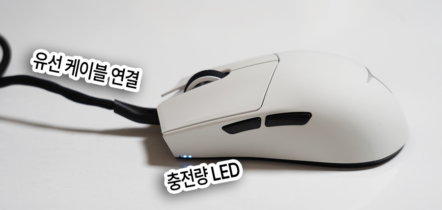마우스의 경우 좌측 부분에, 3개의 LED로 충전량을 금방 확인할 수 있게 되어있습니다.