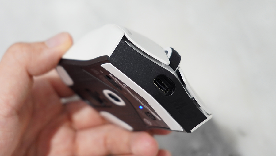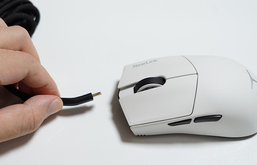 앞면에는 USB C 포트로 되어 있고... 여기에 케이블을 연결하면 바로 유선 게이밍 마우스로 사용이 가능합니다.