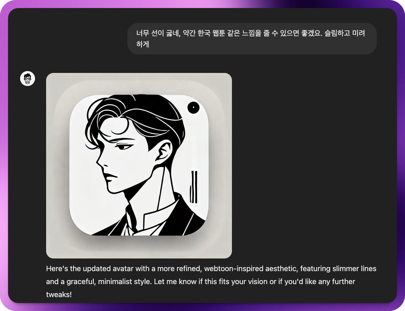 ์ํ๋ ๊ฒฐ๊ณผ๋ฌผ์ด ๋์ค์ง ์์ ์ฌ๋ฌ๋ฒ ํ๋กฌํํธ๋ฅผ ์์ ํด์ผ ํ๊ธฐ๋ ํ์ง๋ง, ๊ทธ๋๋ ๋ ธ์ Notion ์ฒ๋ผ ๋ฏธ๋๋ฉํ ๋ผ์ธ์ผ๋ก ๊ทธ๋ ค์ง ์คํ์ผ์ ํ๋กํ ์ด๋ฏธ์ง๋ฅผ ๋ง๋ค์ด๋ณด๊ณ ์ถ๋ค๋ฉด, Simplified Notion Avatar Designer๋ฅผ ์ฌ์ฉํด๋ณผ ์ ์์ต๋๋ค.