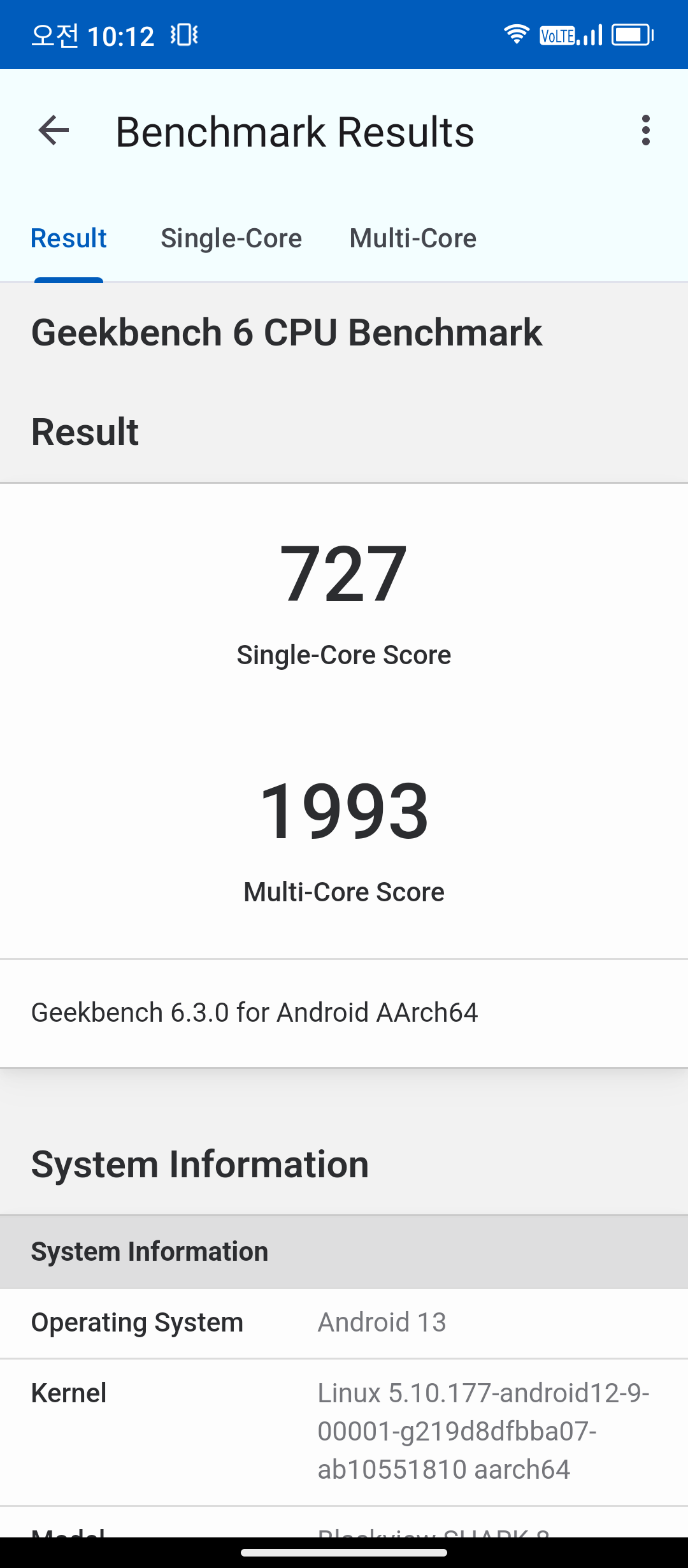 아래는 긱벤치6 결과입니다.