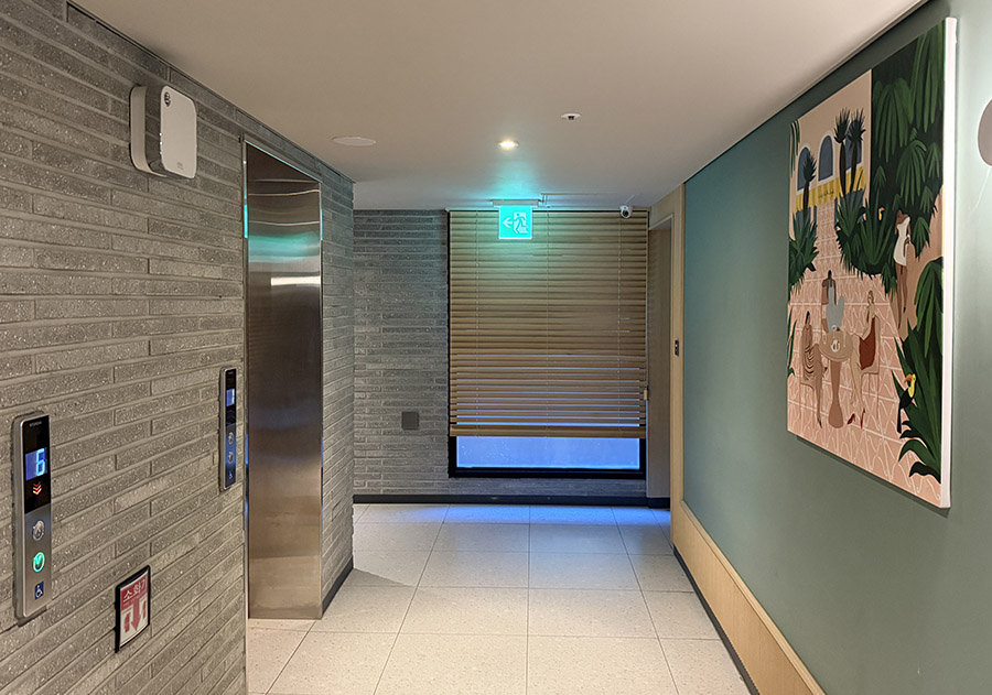 들어가자마자 오른쪽으로는 로비, 프론트가 있고... 앞으로 쭉 들어가면 엘베가 있습니다.
