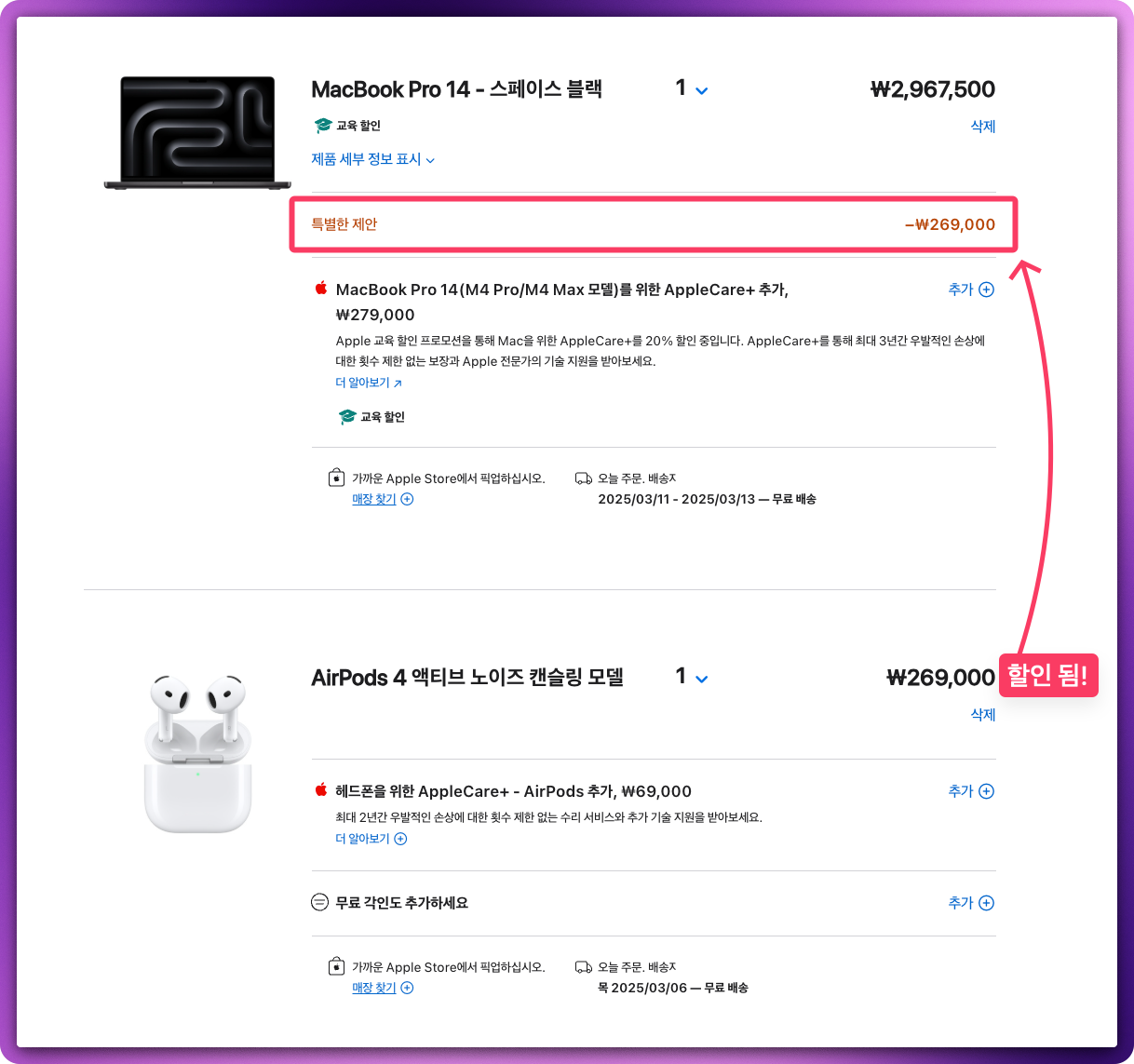 μ μ΄μ κ²°μ λ₯Ό νκΈ° μ μ μμΈν 보μλ©΄, μμ΄ν4μ κ°κ²©λ§νΌ (μ ννλ 26λ§ 9μ²μ) κ°κ²©μ΄ μ ν΄μ§ κ²μ ν μ μμ΅λλ€. μ¦, λ§₯λΆνλ‘ 14λ₯Ό μ½ 297λ§μμ, μμ΄νκΉμ§ ν¬ν¨ν΄μ ꡬμ νλ κ²μ΄λ... μΌλ° μ€ν μ΄μμ λ§₯λΆνλ‘λ₯Ό ꡬμ νλ κ²λ³΄λ€ μ΄ κΈ°κ°μ ꡬμ νλ©΄ λ ν격μ μΈ κ΅μ‘ν μΈμ λ°μ μ μλ κ²μ΄μ£ . κ·Έλμ λ§€λ μ νκΈ° μμ¦μ μ νμ νμ ꡬμ νκ² λλ κ² κ°λ€μ :)