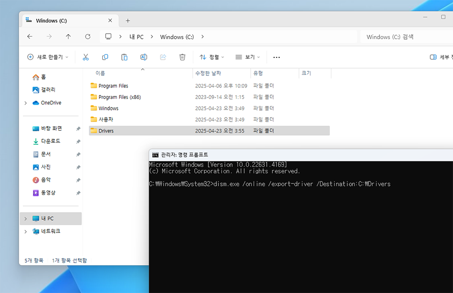 ์๋์ฐ์ ๋๋ผ์ด๋ฒ๋ฅผ ๋ฐฑ์ ํ๋ ๋ฐฉ๋ฒ์ ์ฌ๋ฌ๊ฐ์ง๊ฐ ์๋๋ฐ, ์ผ๋จ ์ ๊ฐ ์ฐ๋ ๋ฐฉ๋ฒ์ C๋๋ผ์ด๋ธ์ Drivers๋ผ๋ ํด๋๋ฅผ ๋ง๋ค์ด ๋ก๋๋ค. ๊ทธ๋ฆฌ๊ณ ๊ด๋ฆฌ์ ๊ถํ์ผ๋ก cmd๋ฅผ ์คํํฉ๋๋ค.