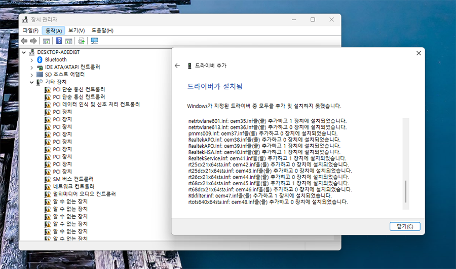 ์์ ๊ฐ์ด ๋ช๋ช๊ฐ๋ ์คํจํ๋ค๊ณ ๋์ค์ง๋ง, ๊ทธ๋๋ ์ ๊ฒฝ์ฐ์๋ ๋ชจ๋ ๋๋ผ์ด๋ฒ๋ค์ด ๋ค ๋ฑ๋ก๋ ๊ฒ์ ํ์ธํ ์ ์์์ต๋๋ค. :)