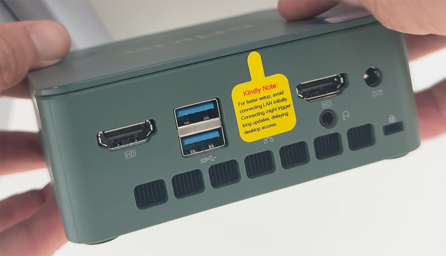상당히 흥미로운 것이 있는데, 바로 LAN 포트에 안내 스티커가 하나 붙여져 있다는 것입니다. LAN선을 꼽고 시동을 하면 업데이트 때문에 부팅이 매우 느릴 수 있으니 되도록 첫시동시에는 꽂지 말라는 것.