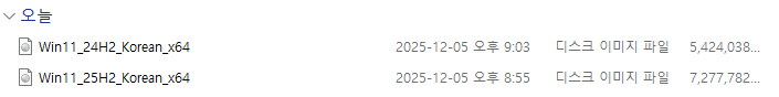 윈도우11 25H2를 포기하고... 이전 버전인 24H2 빌들을 받아서 다시 윈도우를 클린 설치했습니다. 미니PC는 한번쯤 이렇게 확 포맷을 해버리고 클린설치하는 것이 더 바람직하니.. 겸사겸사...