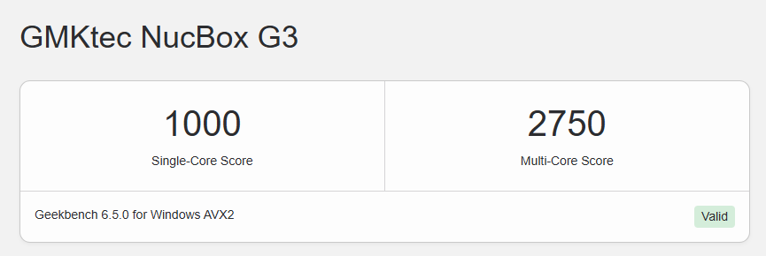 긱벤치6 기준으로 싱글코어 1000, 멀티코어 2750점이네요. 참고로 램은 8GB입니다.